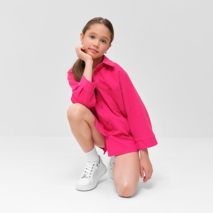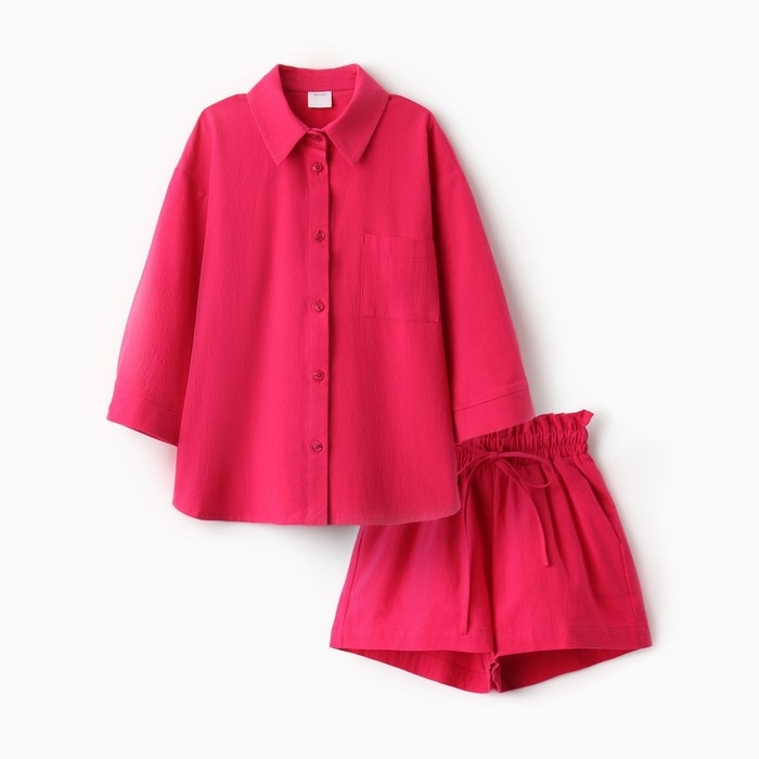 Костюм для девочки (рубашка и шорты) MINAKU, цвет фуксия, рост 122-128 см