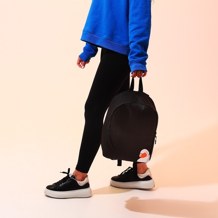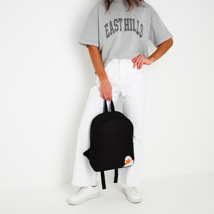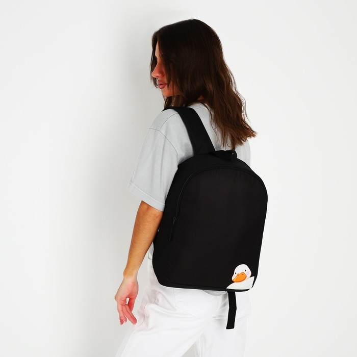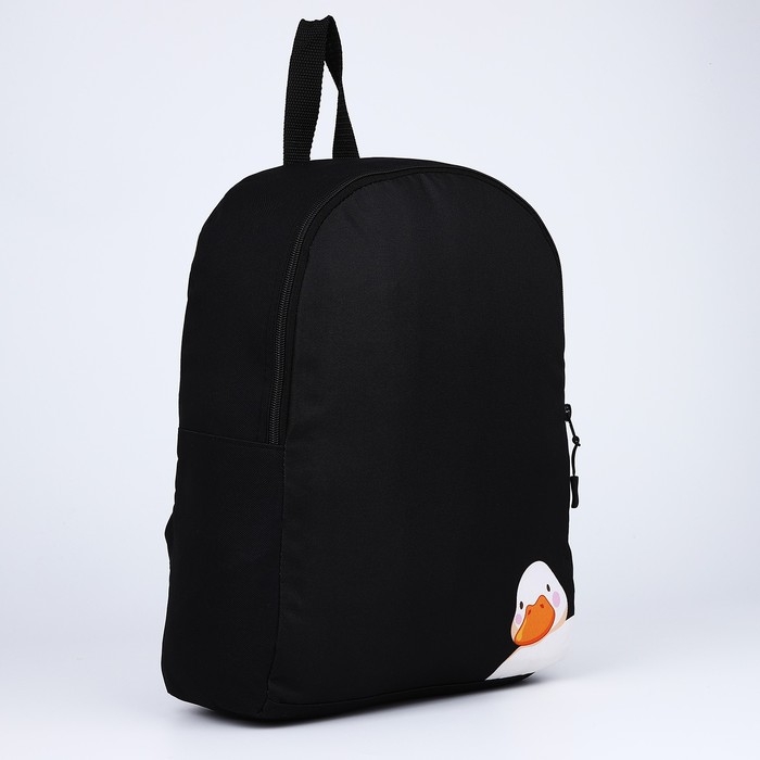 Рюкзак школьный текстильный «Утка», 38х14х27 см, цвет чёрный