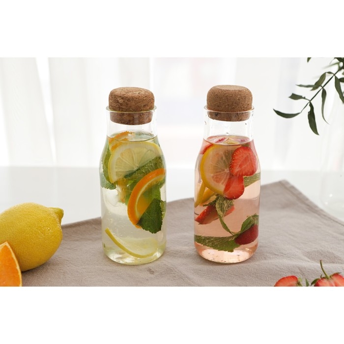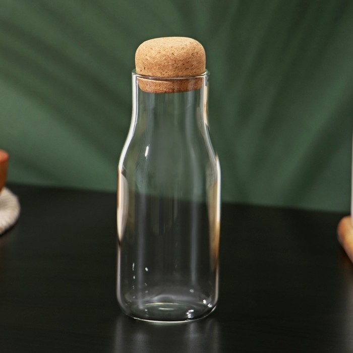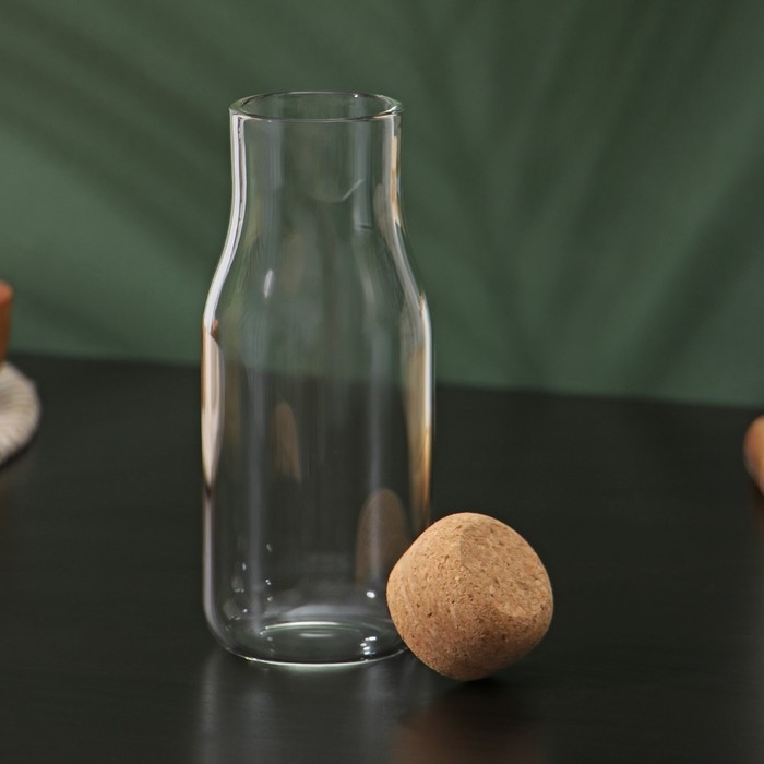 Бутыль легко моется, не впитывает запахи и не вступает в реакцию с продуктами. Пробковая крышка плотно закрывает сосуд, защищая содержимое от пыли и предотвращая проливание жидкости.