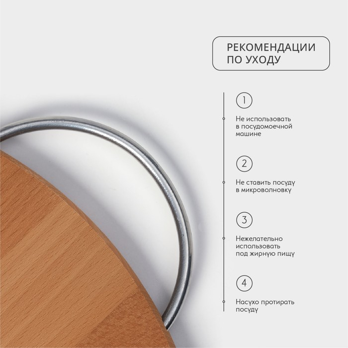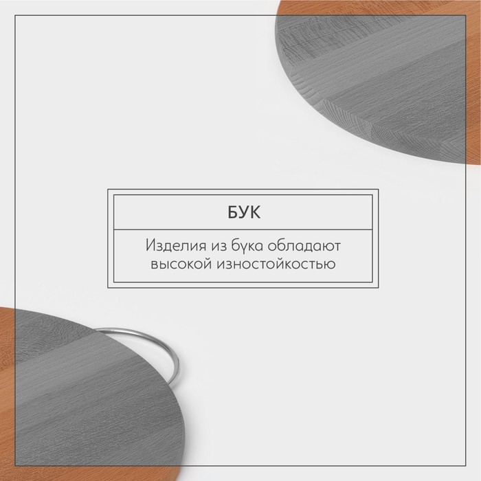 Доска разделочная Adelica, с металлической ручкой, d=30 см, толщина 1,6 см, бук
