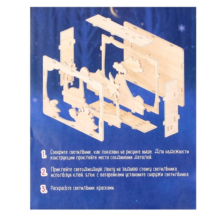 С этим набором для творчества ребёнок своими руками сделает уникальный ночник с картинкой внутри. Сборка поможет развить творческие способности ребёнка. А ещё подарит радость и чудесное настроение всей семье. Создайте волшебную атмосферу праздника!