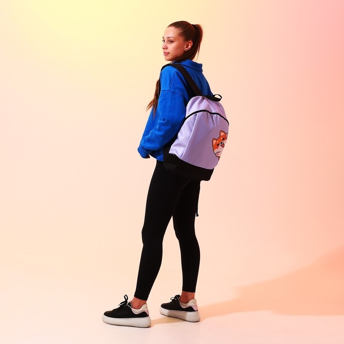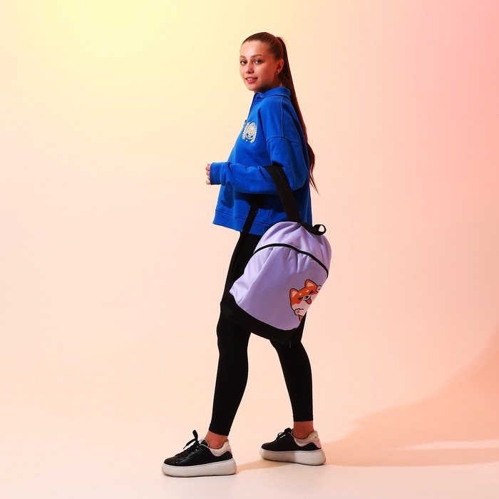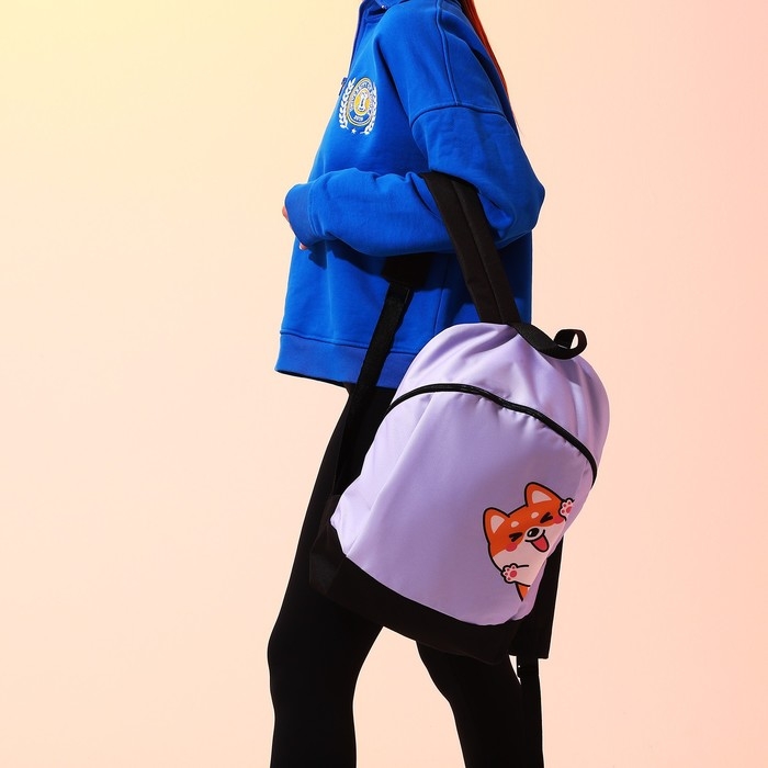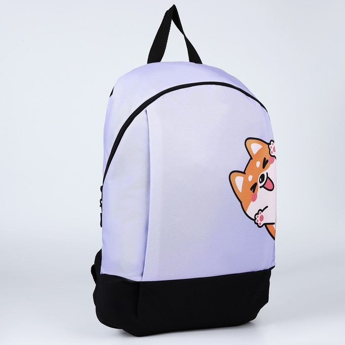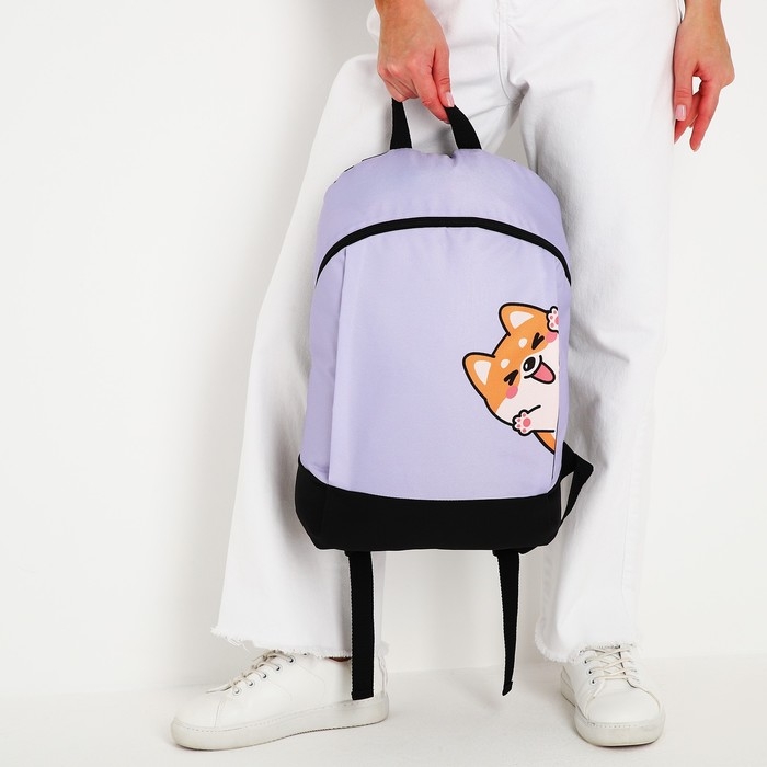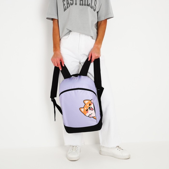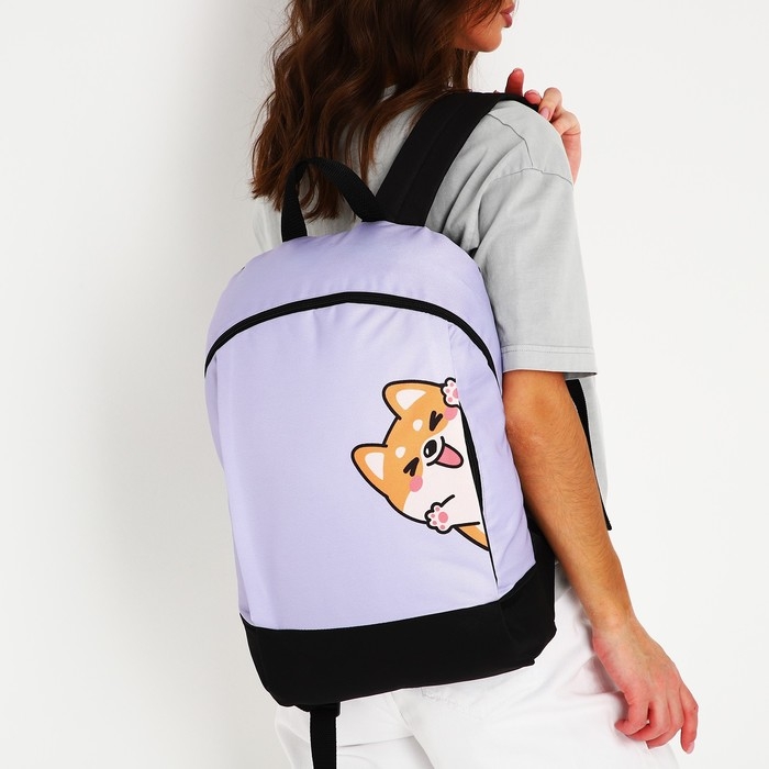 Рюкзак школьный текстильный «Корги», 46х30х10 см, вертикальный карман, цвет фиолетовый