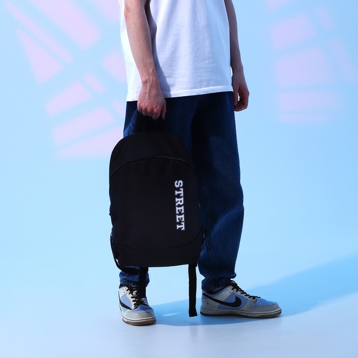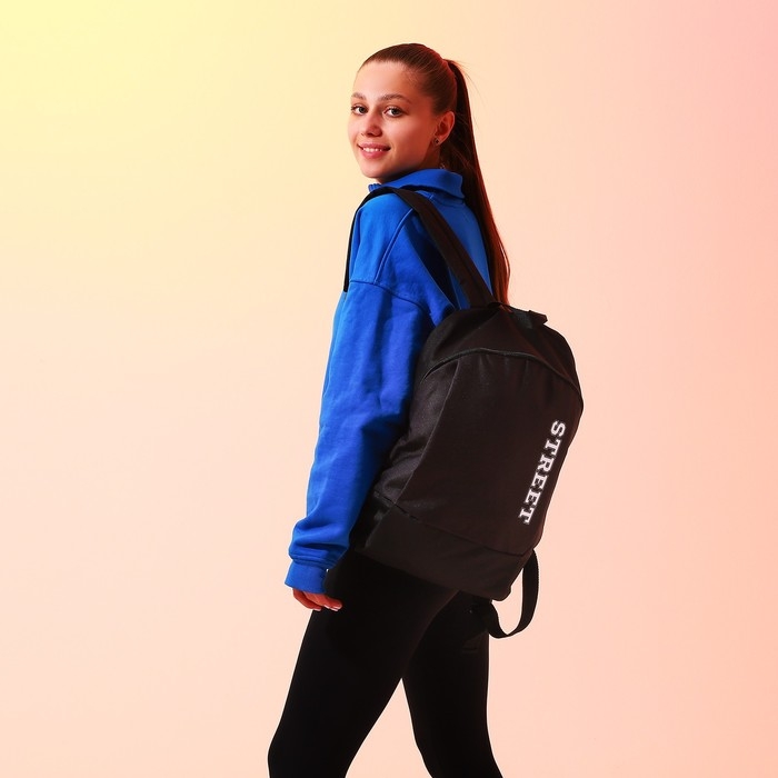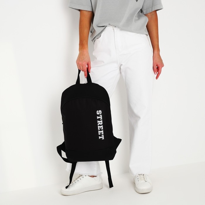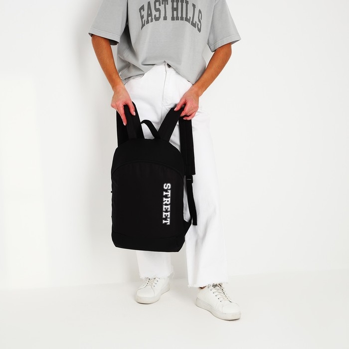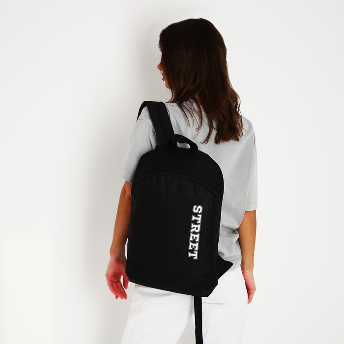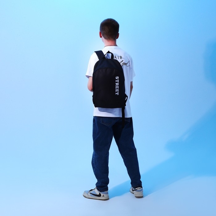 Рюкзак школьный текстильный Street, 46х30х10 см, вертикальный карман, цвет чёрный