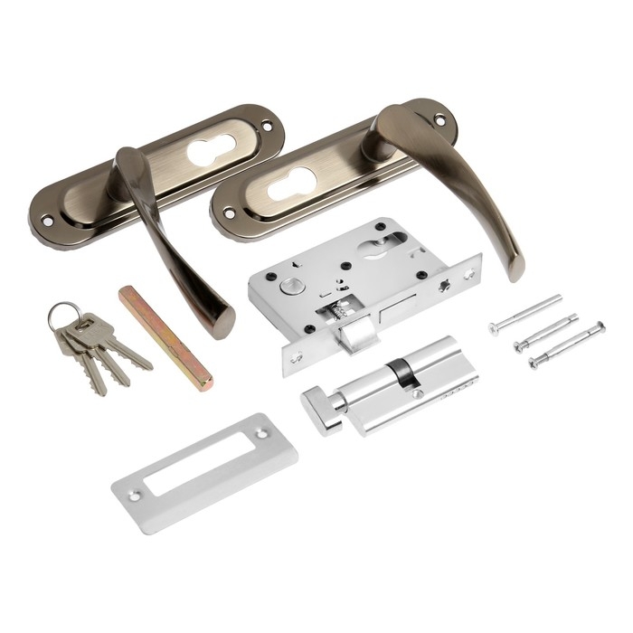 Замок врезной LOCKLAND RD004, с ручкой, 3 ключа, цвет черный никель
