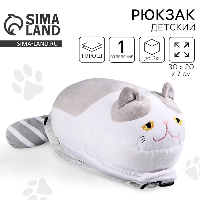 Рюкзак детский плюшевый для девочки «Кот», 30 х 7 х 20 см