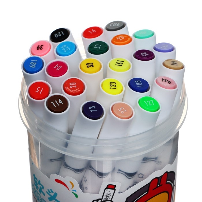 Набор маркеров, 24 цветов, кистеобразный наконечник, в пластиковой коробке