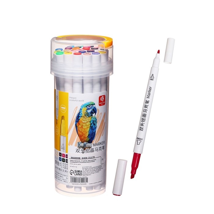 Набор маркеров, 24 цветов, двусторонние, пулевидный и скошенный наконечники