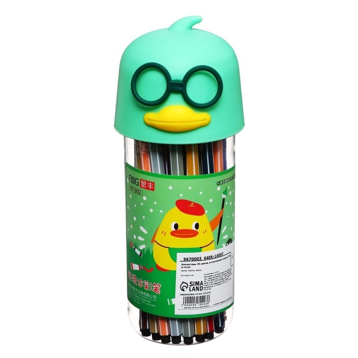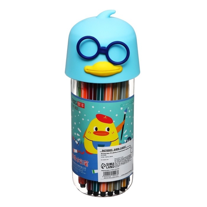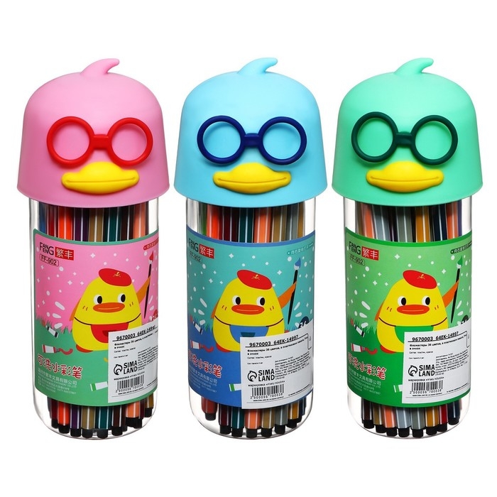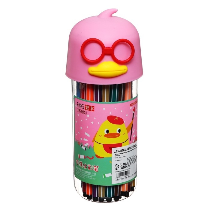 Фломастеры 36 цветов "Утка в очках", в пластиковом пенале, МИКС