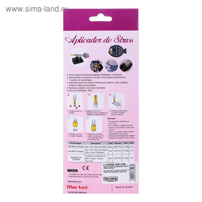 Термо-аппликатор для наклеивания страз, 7 насадок, подставка, № ОР-02