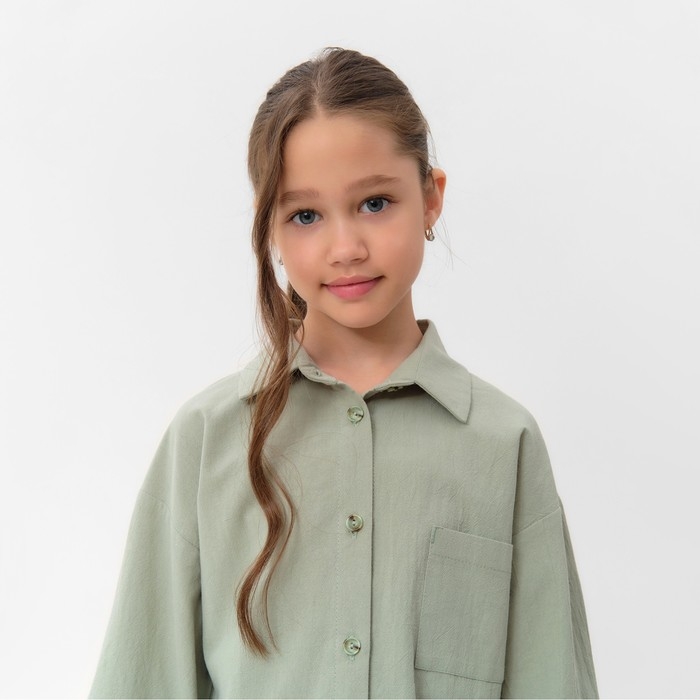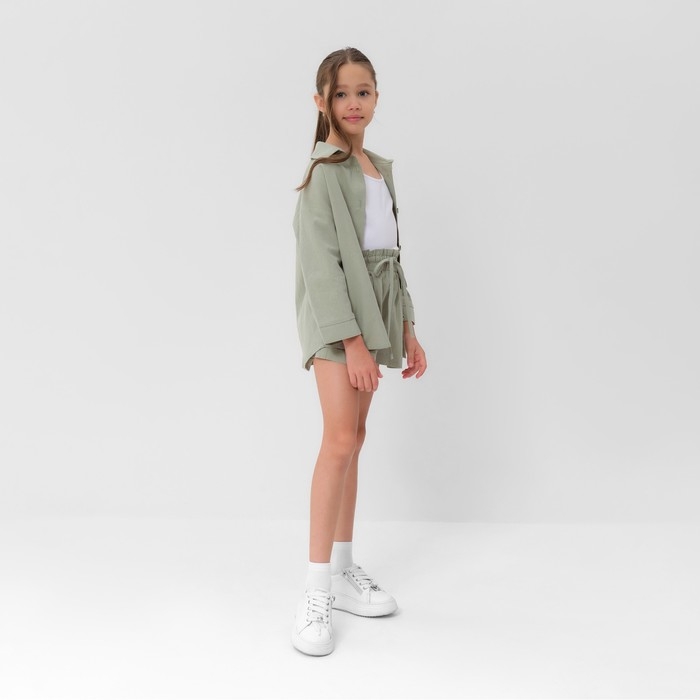 Костюм для девочки (рубашка и шорты) MINAKU, цвет оливковый, рост 122-128 см