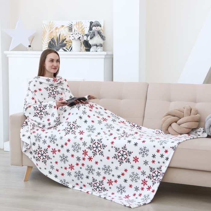Плед с рукавами Этель "Снежинки" (вид2) 150*200 см,100% п/э, корал-флис 220 гр/м2