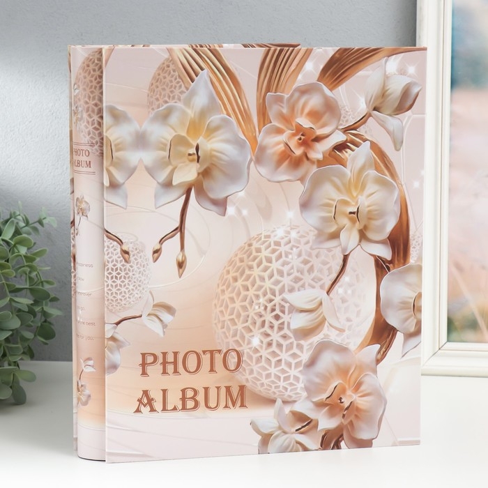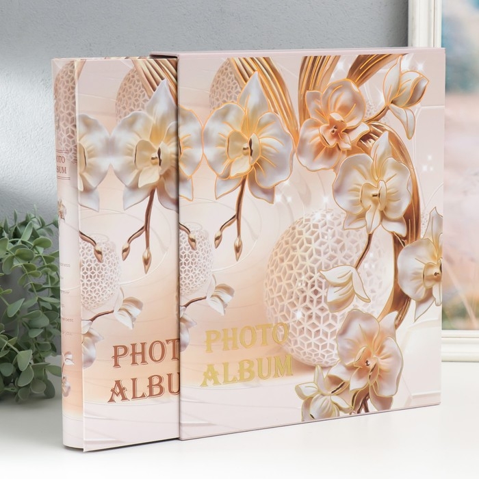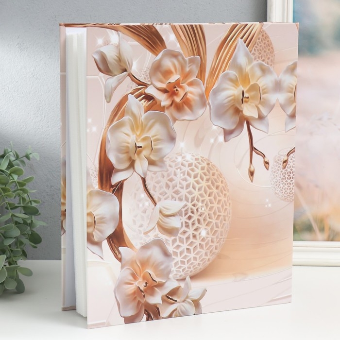 Фотоальбом на 400 фото 10х15 см "Кремовые орхидеи" золотое тиснение МИКС 33,5х27,5х5,5 см