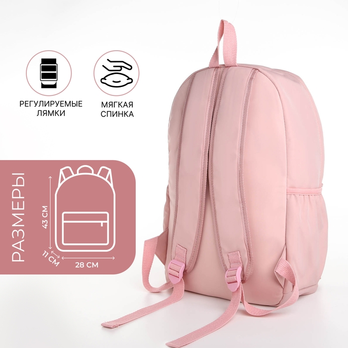 Рюкзак школьный из текстиля, 4 кармана, цвет розовый
