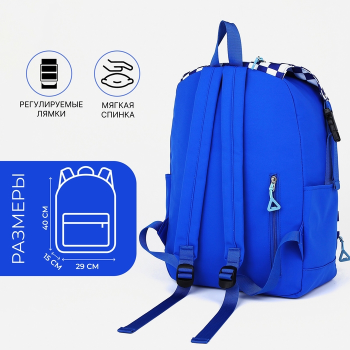 Рюкзак школьный из текстиля, 5 карманов, цвет синий