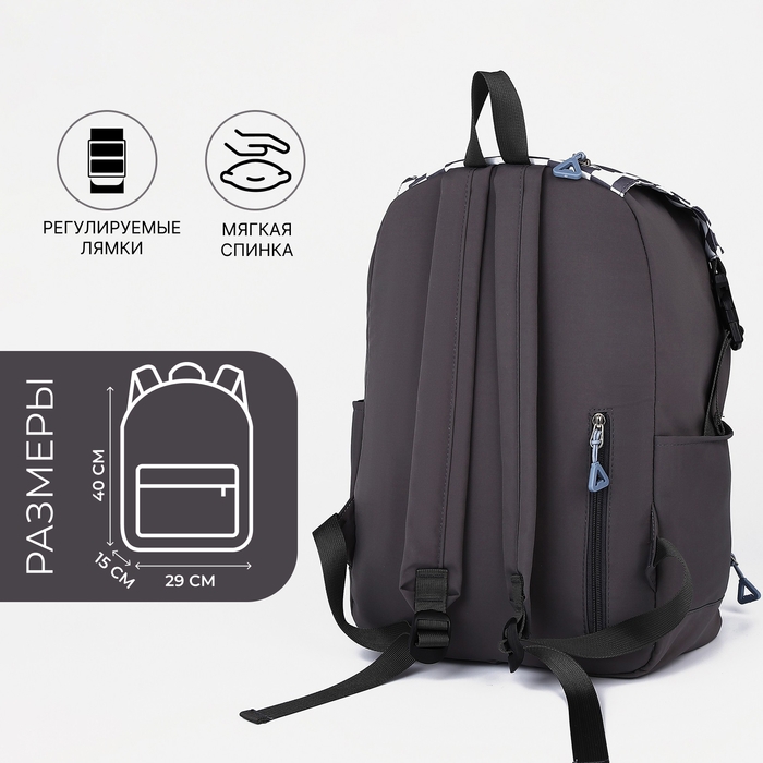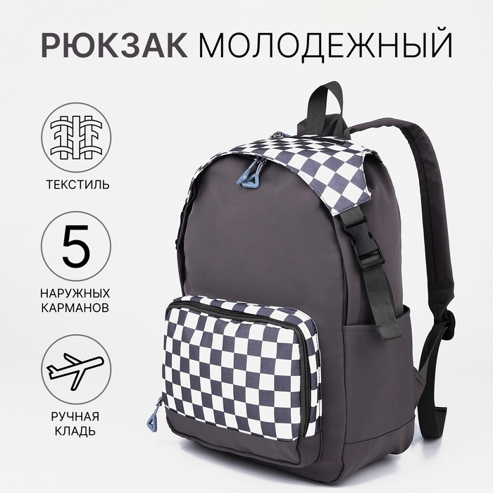 Рюкзак школьный из текстиля, 5 карманов, цвет серый