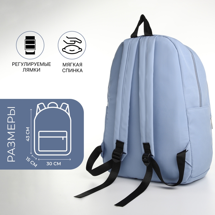 Рюкзак школьный из текстиля, 2 отдела на молниях, 3 кармана, цвет синий