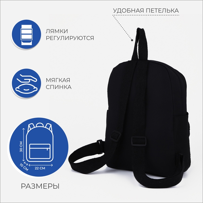 Рюкзак детский на молнии, 3 наружных кармана, цвет чёрный