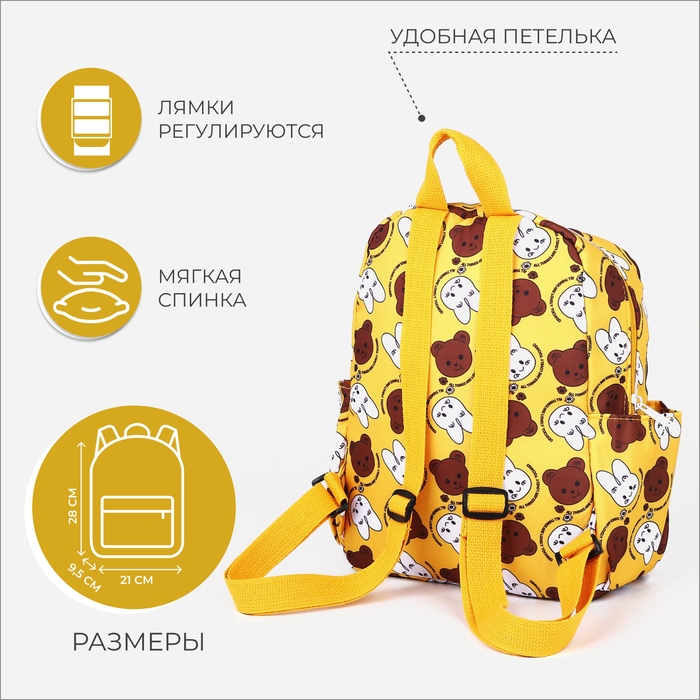 Рюкзак детский на молнии «Выбражулька», 3 наружных кармана, цвет жёлтый