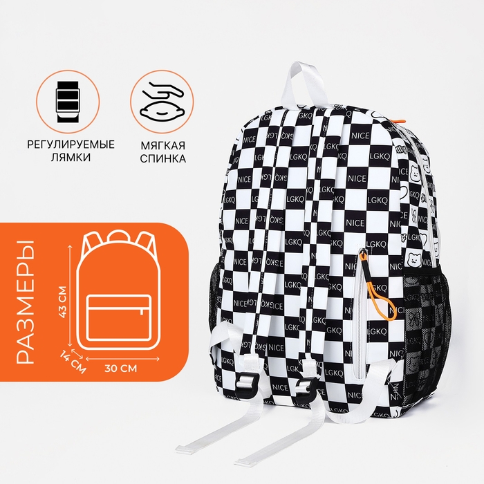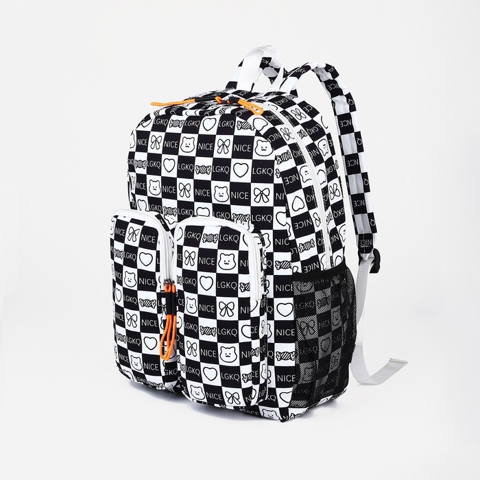 Рюкзак школьный из текстиля на молнии, 5 карманов, цвет чёрный