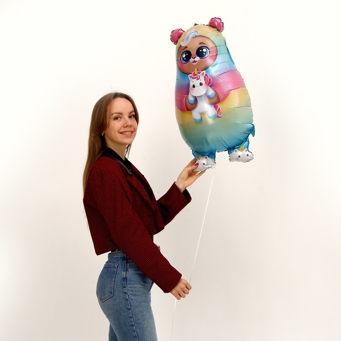 Фольгированный шар в виде милого мишки, держащего в лапах игрушку-единорога, подойдёт для множества целей. Он может просто стать игрушкой для ребёнка или с его помощью можно оформить детский день рождения, комнату при выписке из роддома и многое другое.