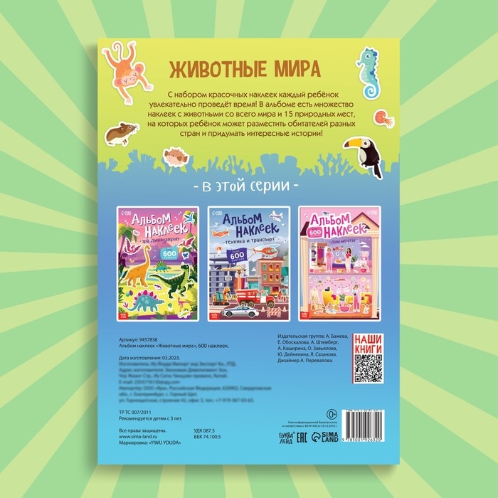 Альбом наклеек «Животные мира», 600 наклеек