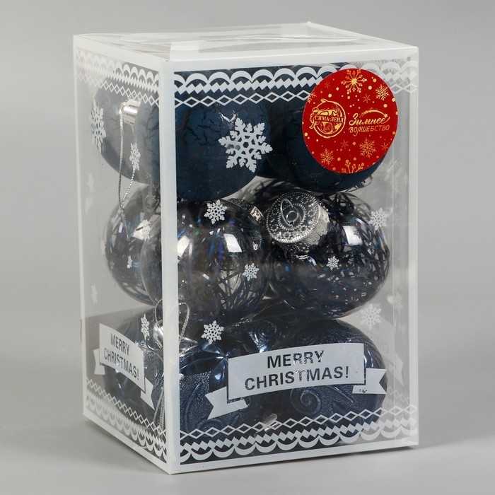 Набор шаров пластик d-6 см, 12 шт "Зимняя музыка" узор, синий