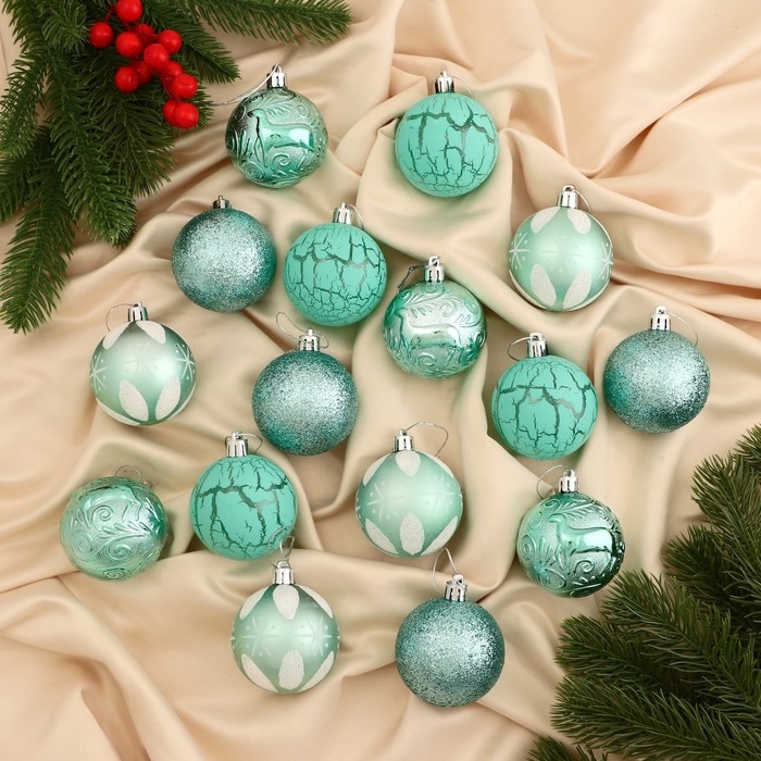 Набор шаров пластик d-6 см, 16 шт "Мелодия" узор треск, зелёный