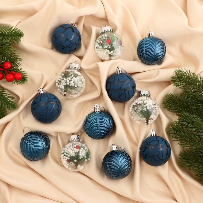 Набор шаров пластик d-6 см, 12 шт "Зимняя музыка" ёлочка, синий