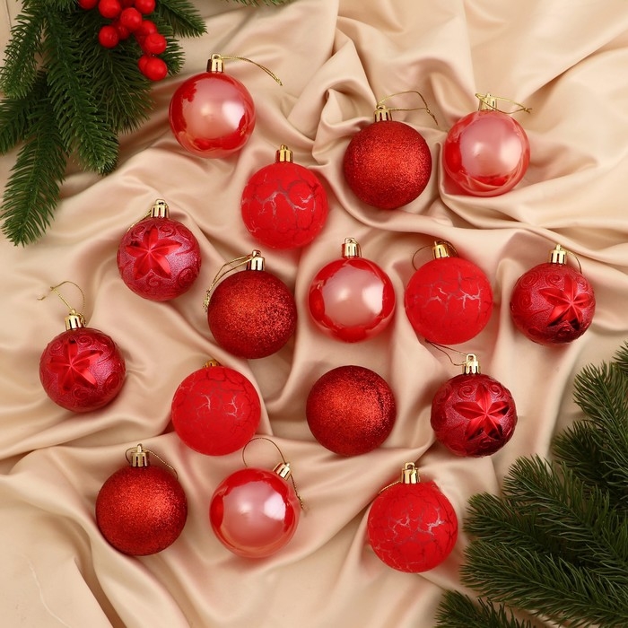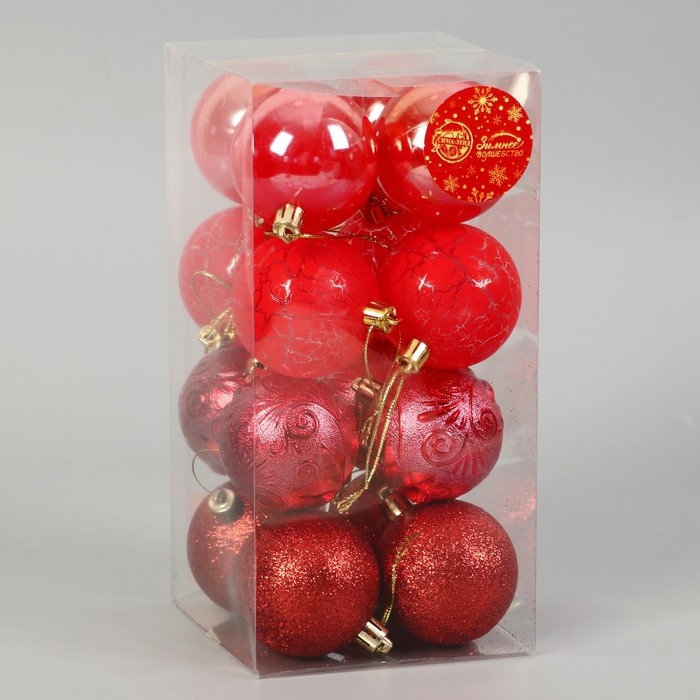 Набор шаров пластик d-6 см, 16 шт "Мелодия" узор треск, красный