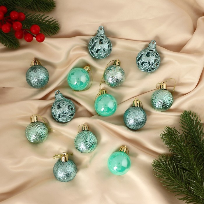 Набор шаров пластик d-4 см, 30 шт "Мелодия" орнамент, зелёный