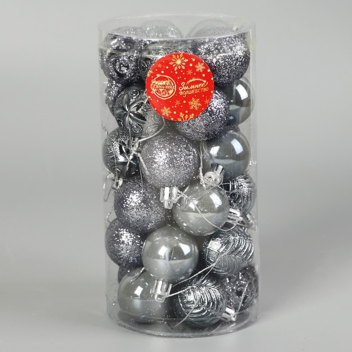 Набор шаров пластик d-4 см, 30 шт "Мелодия" орнамент, серый