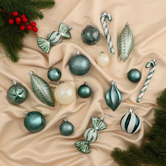 Набор украшений пластик 40 шт "Зимняя радость" бело-зелёный