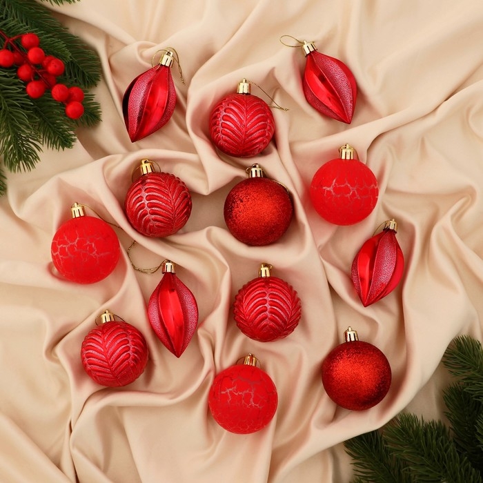 Набор украшений пластик 13 шт "Мелодия" капелька, 6 см, красный
