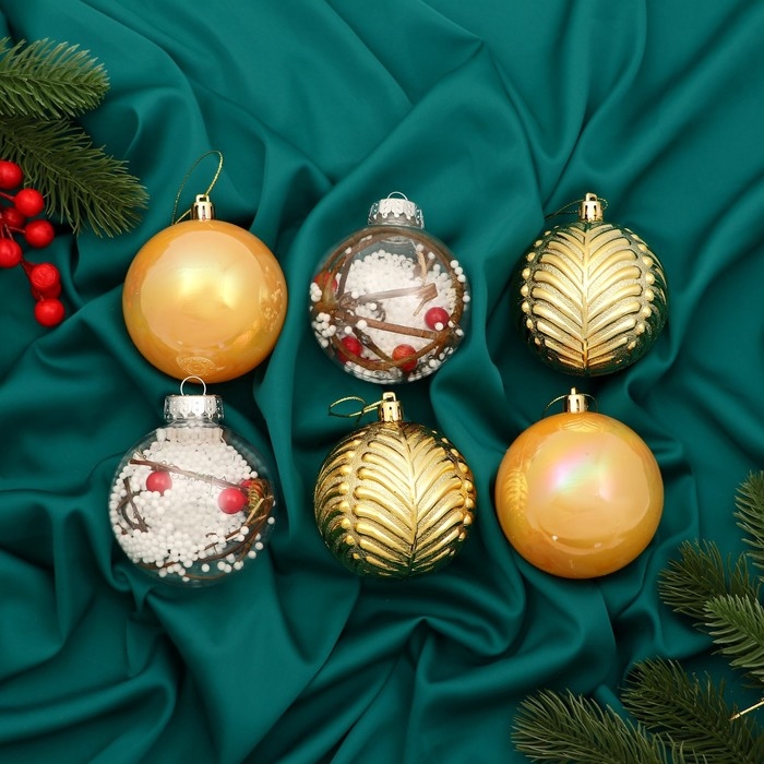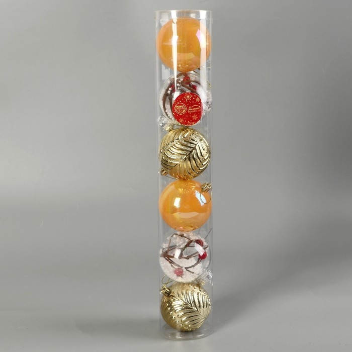 Набор шаров пластик d-8 см, 6 шт "Мелодия" веточки глянец, золото