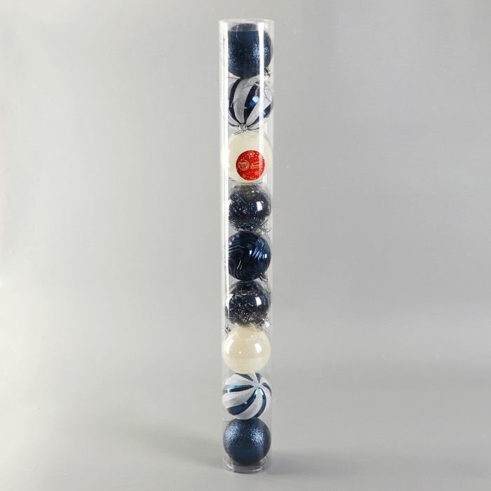 Набор шаров пластик d-8 см, 9 шт "Мелодия" диско полосы, бело-синий