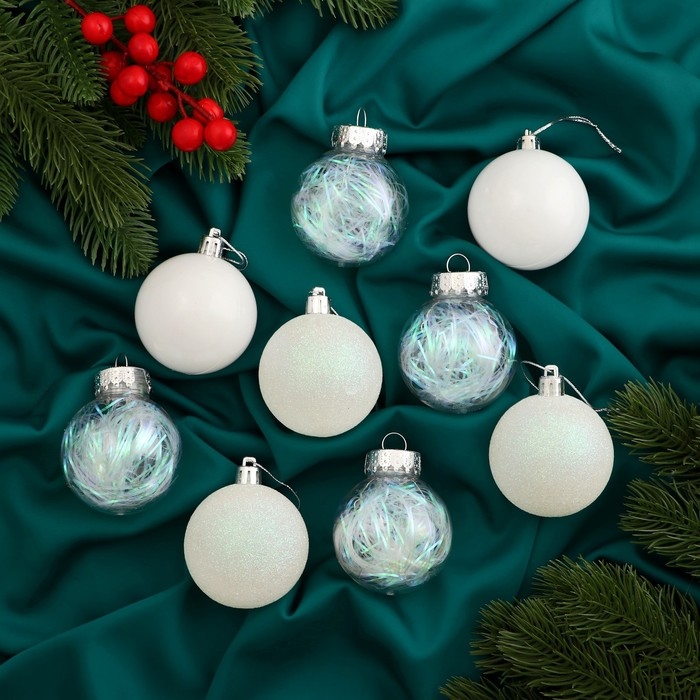 Набор шаров пластик d-6 см, 9 шт "Мелодия" диско ассорти, белый