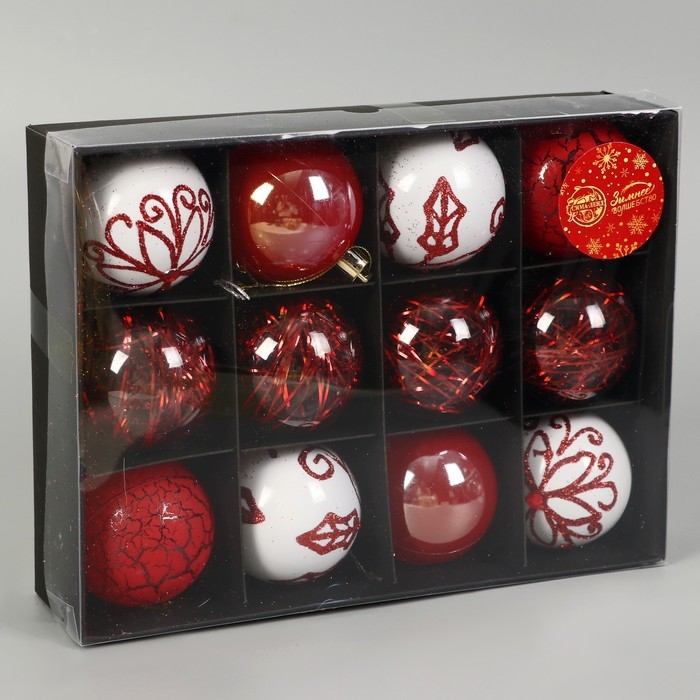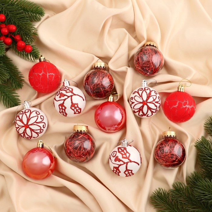 Набор шаров пластик d-6 см, 12 шт "Мелодия элит" ассорти, белый красный