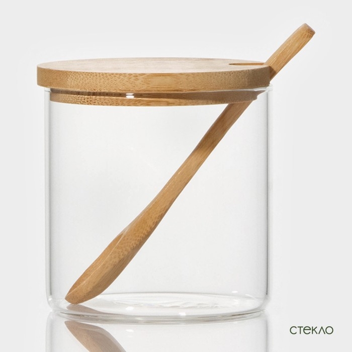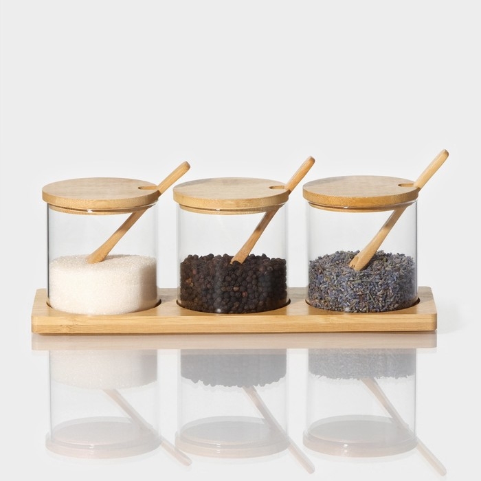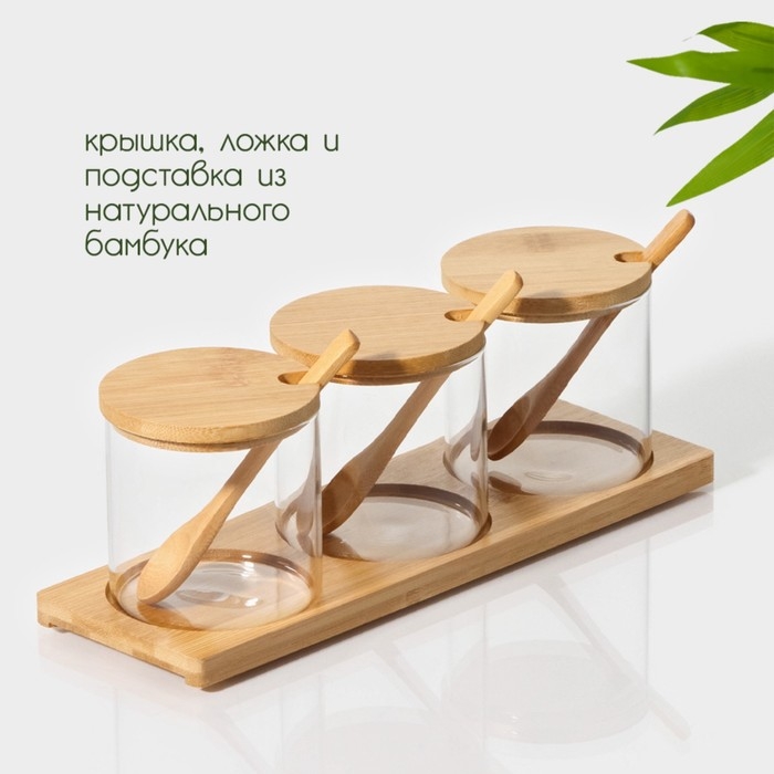 Набор банок стеклянных для сыпучих продуктов на бамбуковой подставке BellaTenero «Эко», 3 предмета: 330 мл