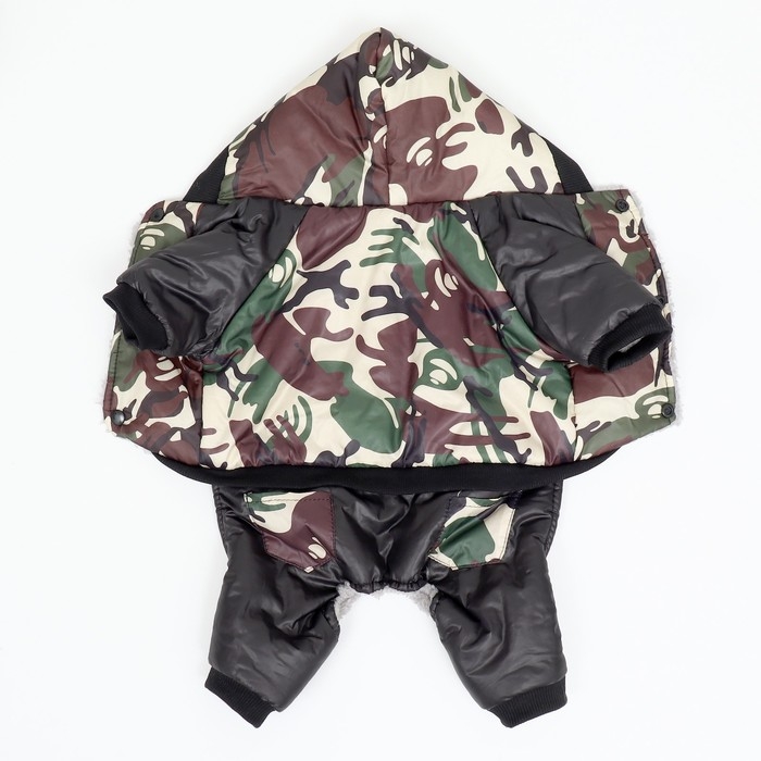 Комбинезон "Камуфляж" на меховом подкладе, размер L (ДС 35, ОШ 35, ОГ 45 см), чёрный/зелён