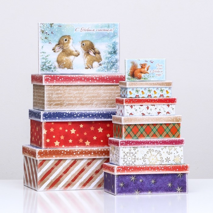Набор коробок 10 в 1 "Сказочного Нового года", 30 х 19 х 11,5 - 12 х 6,5 х 4 см