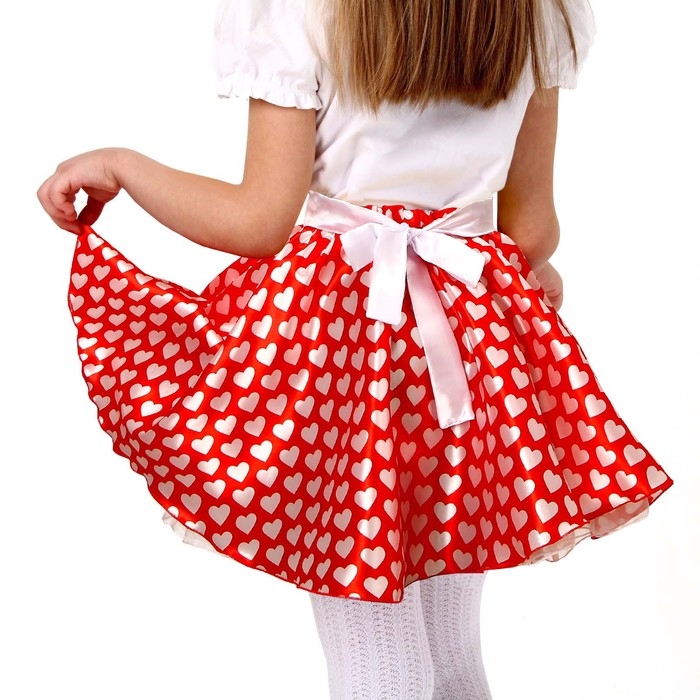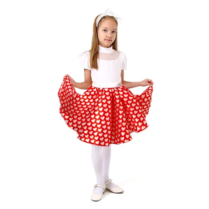 Карнавальный набор «Стиляги 3», юбка красная с белыми сердцами, пояс, повязка, рост 110-116 см