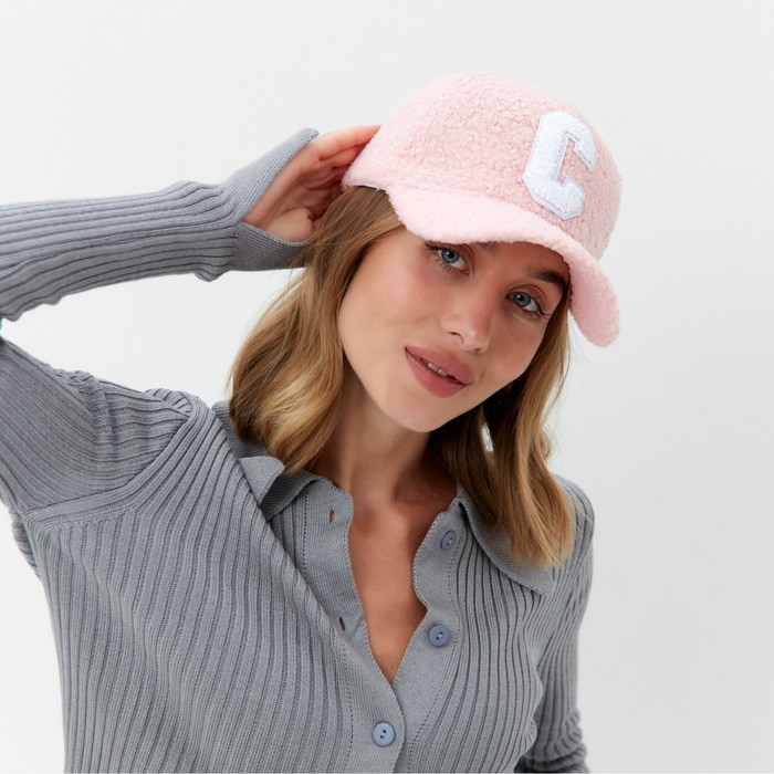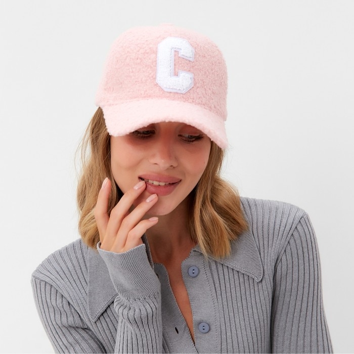 Бейсболка женская тёплая MINAKU барашек, размер 56-58, цвет розовый