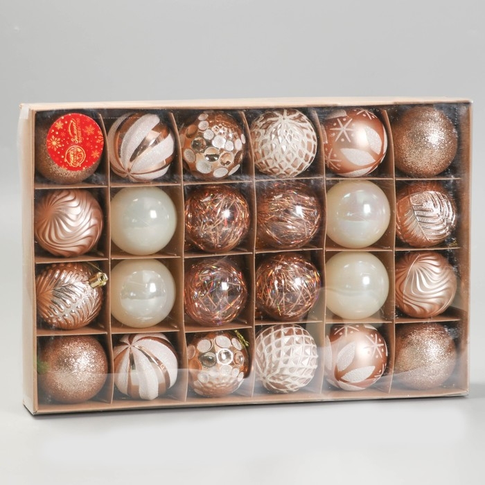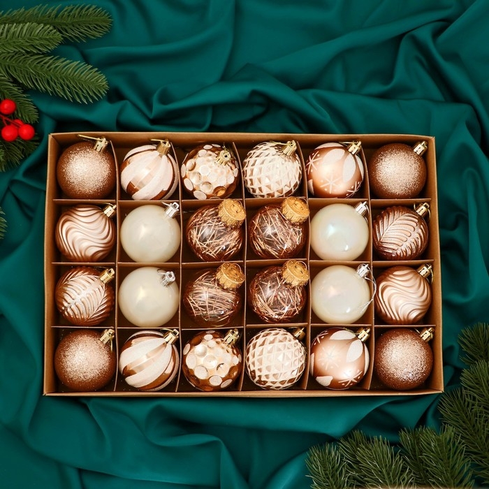 Набор шаров пластик d-6 см, 24 шт "Мелодия" ассорти люкс, бело-золотой