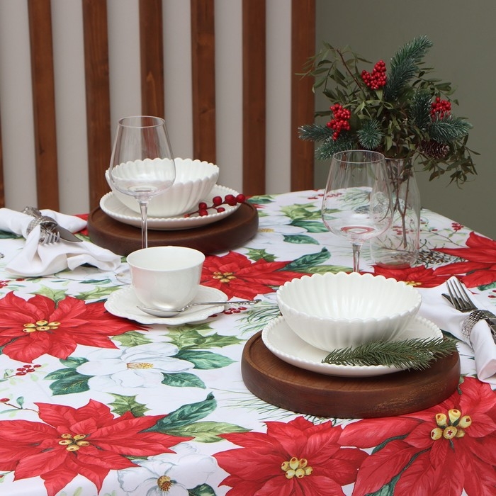 Скатерть Доляна "Рождественские цветы" 145*220 см, 100% п/э