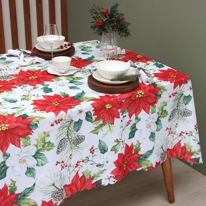 Скатерть Доляна "Рождественские цветы" 145*260 см, 100% п/э