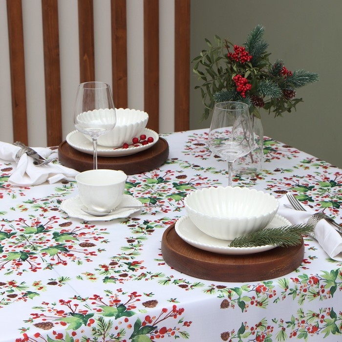 Скатерть Доляна "Хвойный узор" 145*300 см, 100% п/э