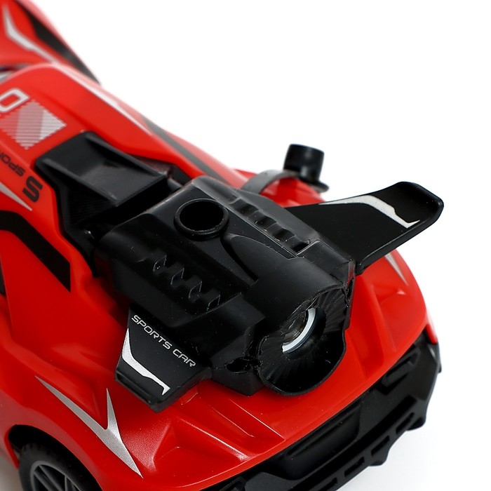 - Эффект дыма из выхлопной трубы и подсветка. Чтобы пошёл «дым», необходимо залить воду в двигатель. Откройте резиновую заглушку, залейте воду с помощью пипетки из комплекта и закройте заглушку обратно.