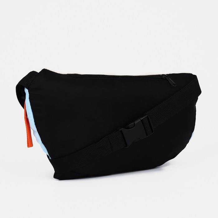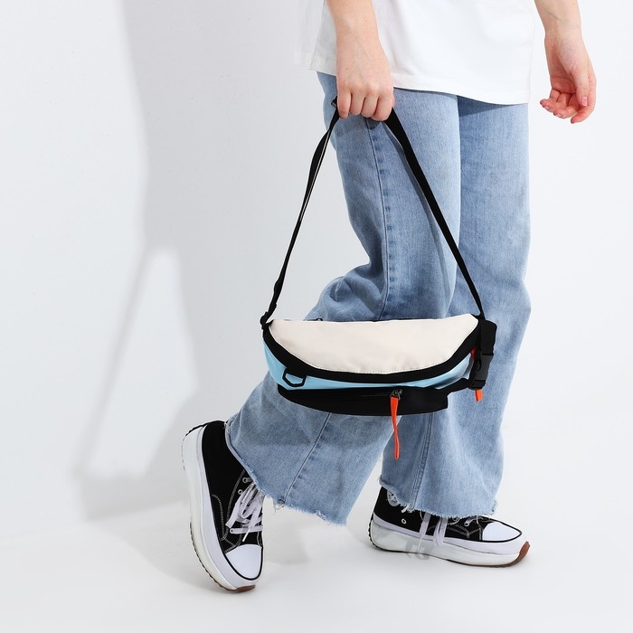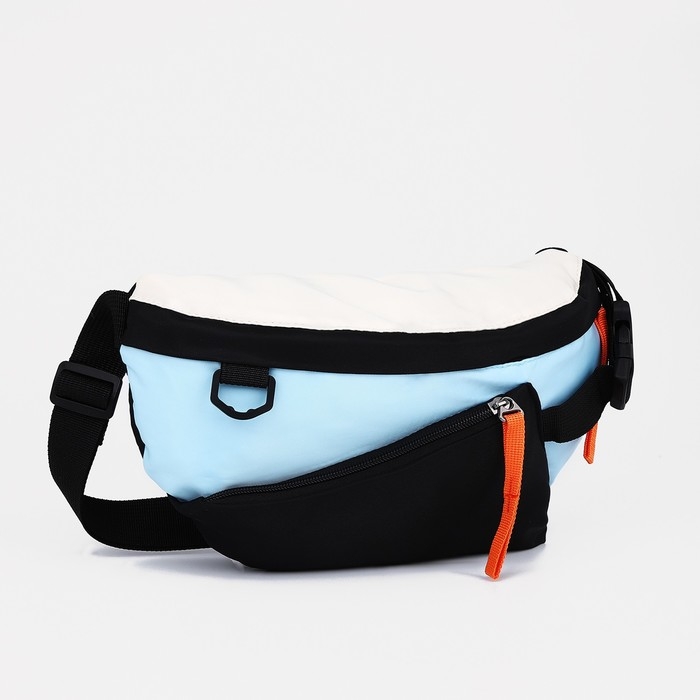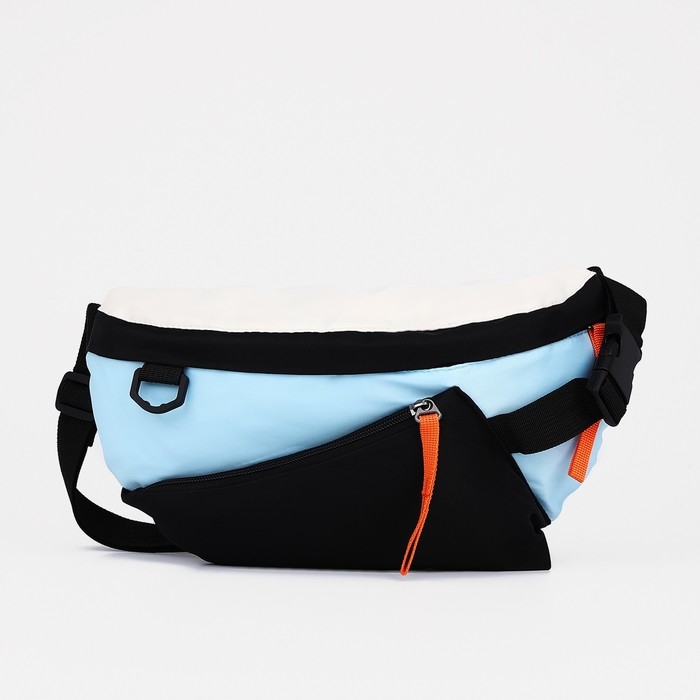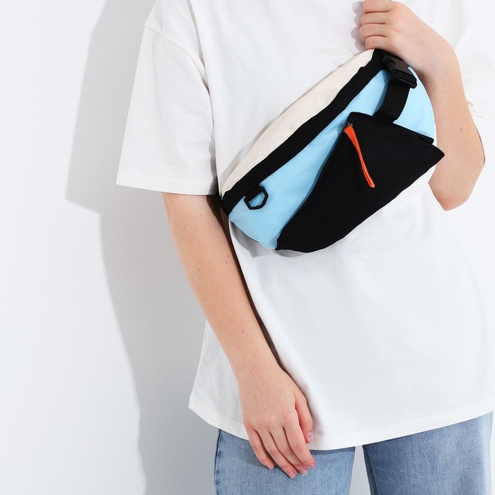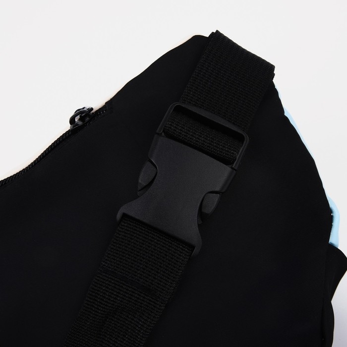 Сумка на одно плечо на молнии, 2 наружных кармана, цвет голубой/чёрный