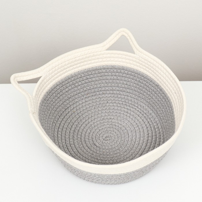 Экологичный лежак для животных (хлобчатобумажный), 35 х 35 х 12 см, вес до 5 кг, бело-серый
