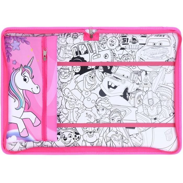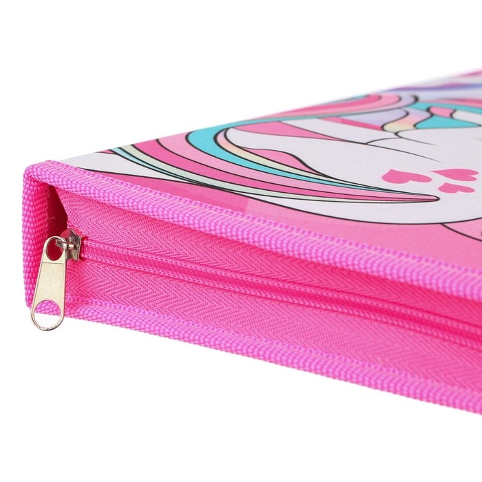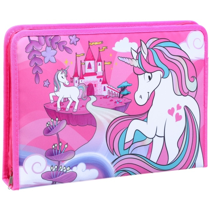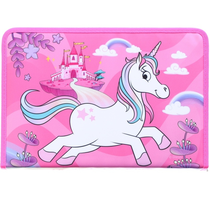 Папка для труда А4 с пеналом, на молнии, текстиль, Минни Маус и единорог